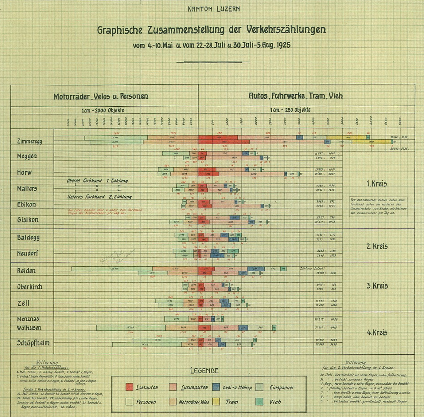 Diese Grafik ist das Resultat einer Verkehrszählung im Jahr 1925 in Luzern: