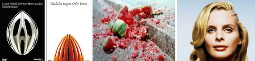 Seltsam wird es aber, wenn Helmträger von der gesamten radfahrenden Mitmenschheit fordern, dass sie ebenfalls stets einen Helm aufhaben, wenn sie sich einem Fahrradbloss nähern. So, dass der Helm zum Markenzeichen der Velofahrer wird, wie es seinerzeit bei den Wikingern der Fall war. Diese trugen auch immer einen helm, wenn sie ein Land überfielen. (Heute überfällt fast nur noch Russland ein anderes Land, und dort fährt ja keiner Rad, weshalb der Vergleich dort besonders Sinn macht.) In den Ländern, in welchen die Helmtrage-Freaks mit einem Helmobligatorium gescheitert sind (und das sind bis dato gottlob die meisten), versuchen sie die Helmtragequote mit sozialem Druck in die Höhe zu treiben, egal wie hoch die Quote bereits ist. So auch in der Schweiz: In Leserbriefen werden Leute verunglimpft, die ohne Helm ein Velo bedienen. Und wehe, auf dem Titelbild des velojournal wird so ein Harakiri-Pilot ohne Helm abgebildet, dann ist die Leserbriefseite für die folgende Ausgabe auch schon gemacht. Auch von Behördenseite wird da massiv Druck gemacht (alle Bilder stammen aus Helmtragekampagnen):