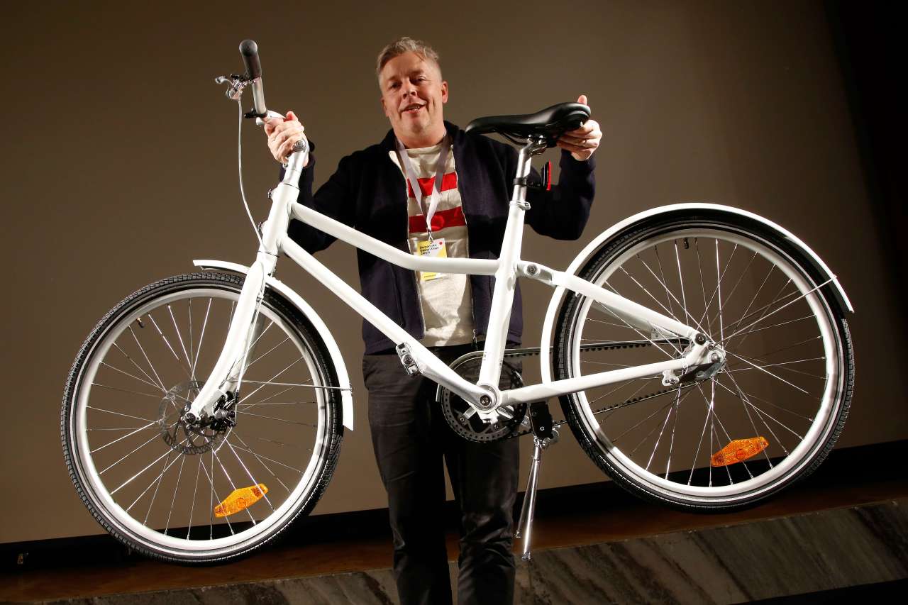 (Am mühsam entspannten Gesicht des Fahrradhebers erkennt man leicht, dass es sich nicht um ein Carbon-Modell handelt.) Dieses Velo wurde letztens von Ikea (dieser Editor hier erkennt das Wort Ikea doch tatsächlich und macht das i automatisch gross! Wau!) an den Ikea Democratic Design Days im Kunsthaus Zürich vorgestellt. Da es aus dem Haus kommt, aus dem es kommt, dürfen wir erwarten, dass es gut zu brauchen ist und einige überraschende Eigenschaften oder Teile hat, die andere Velos so oder in dieser Kombination nicht haben. Und dass es im Frühling 2018 spätestens auseinanderfällt, denn Ikea-Sachen, das weiss ich aus Erfahrung, kannst du zwei-, höchstens dreimal auseinandernehmen und wieder zusammensetzen, aber genau das ist ja gefragt beim Putzen oder Platten beheben. Man darf gespannt sein!