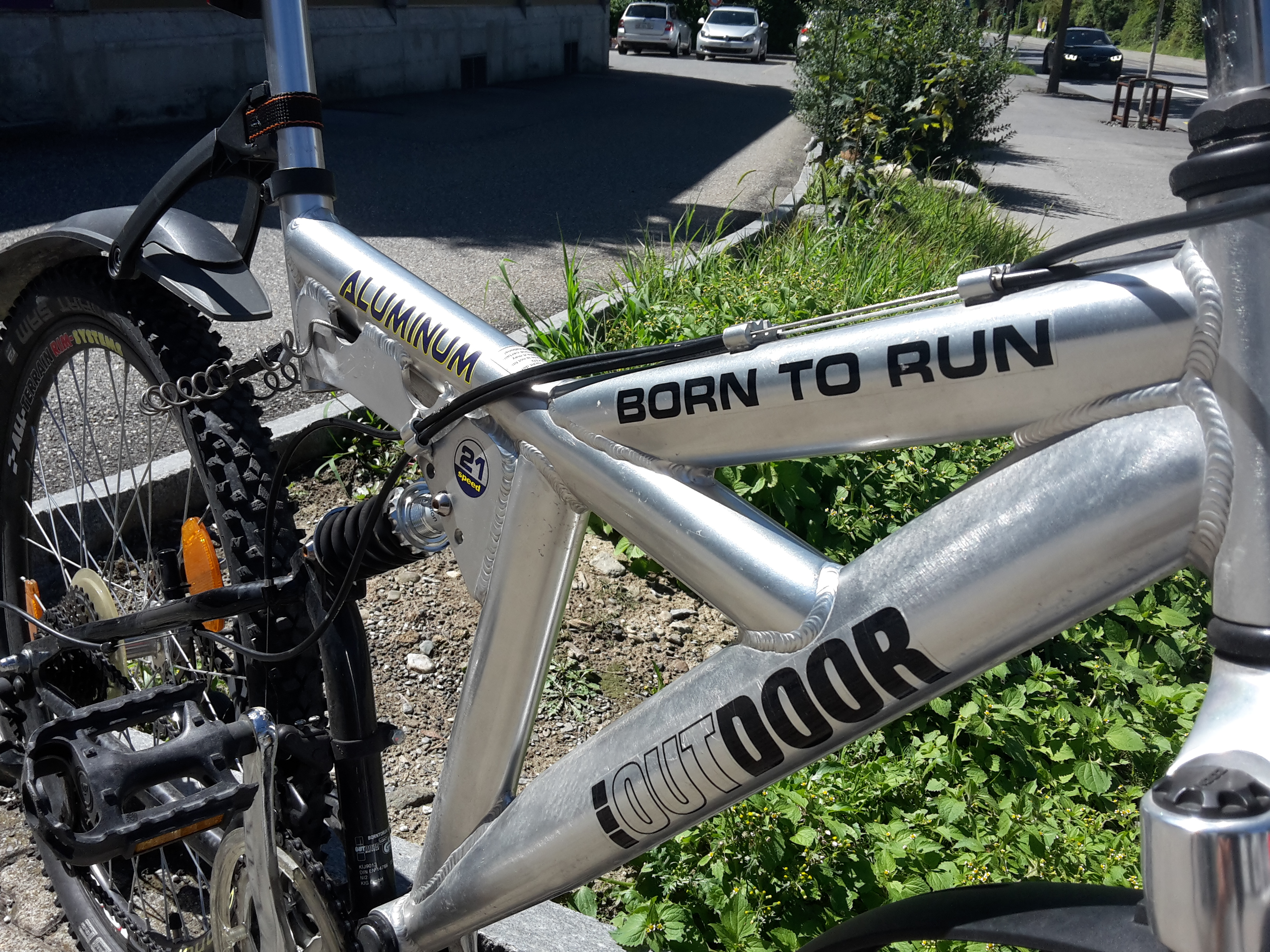 (Für all jene, die nicht mit Springsteens Oeuvre vertraut sind: Born to Run hiess die Platte, mit der Springsteen 1975 den Durchbruch schaffte. Die gleichnamige Single wird immer wieder mal zum besten Rocksong aller Zeiten gewählt.) Ein Scherzkeks, wer hinter der Modellbezeichnung Born to Run für ein Fahrrad einen Hinweis auf die Qualität des Gestühls vermutet. Aber zugegeben, Vertrauen flösst die üppige Rahmengeometrie nur dem Ignoranten ein. Das Wort Aluminum dürfte übrigens kein Schreibfehler (das wär ja peinlich!) sein, sondern eher ein Zeichen der amerikanischen Herkunft dieser Skulptur auf Rädern.