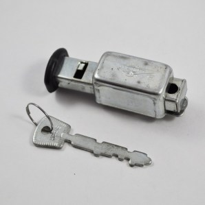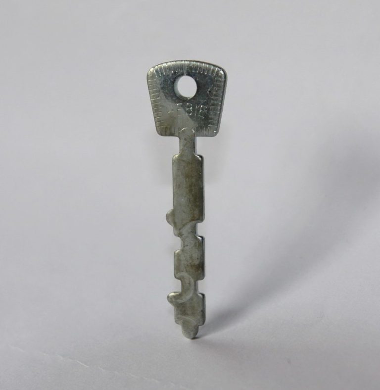 Ich feierte die Entdeckung wie das Wiedersehen mit einem Freund aus Kindertagen. So schön hatte der Schlüssel früher nie ausgesehen, schien mir. Aber vielleicht hat sich ja auch nur mein ästhetisches Empfinden geändert über die Jahre, was ich sehr hoffe. Für die Jüngeren unter Ihnen: Dieser Schlüssel gehört zu einem so genannten Speichenschloss. Ein solches war in den Siebziger- und Achtzigerjahren an der linken Hintergabel fast aller Alltagsräder angeschweisst. Das Schloss war nicht mehr als ein Riegel, eine blosse Wegfahrsperre und in den heute gängigen Klassierungen nach der Sicherheit gegen Diebstahl schlicht unterirdisch. Sogar im Neuzustand konnte ein gezielter Tritt das Schloss unauffällig entfernen. War die Halterung erst einmal angerostet, war der Diebstahl noch viel einfacher. So alt ist dieses System zum Diebstahlschutz, dass im Internet kaum Spuren davon zu finden sind, und wer kann das schon von sich behaupten? Es wundert mich nicht, dass Bilder von einem ¨HEBIE Trumpf-Speichenschloss¨ fast nur auf Verkaufsplattformen zu finden sind. Eines der letzten Modell in Riegelform sah so aus: