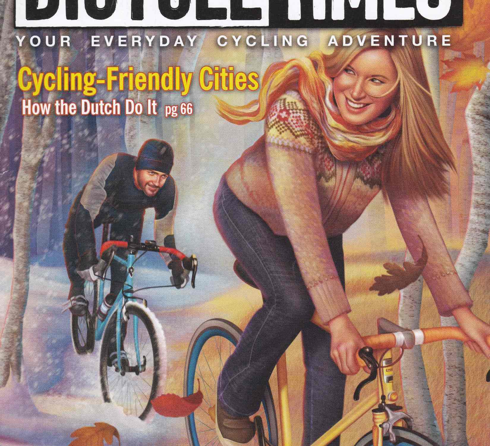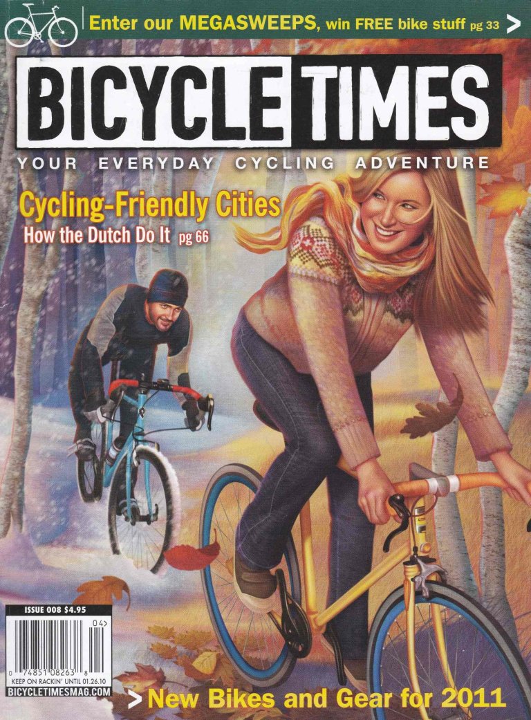 Die Nummer acht von Bicycle Times erschien vor ziemlich genau neun Jahren. Es hat, saisongerecht, einen Übergang zum Thema. Von einer Jahreszeit in die andere, vom alten Jahr ins neue. Interessant: sie fährt voraus, aber während er im Winter zurückzubleiben scheint, ist sie schon im… Herbst!