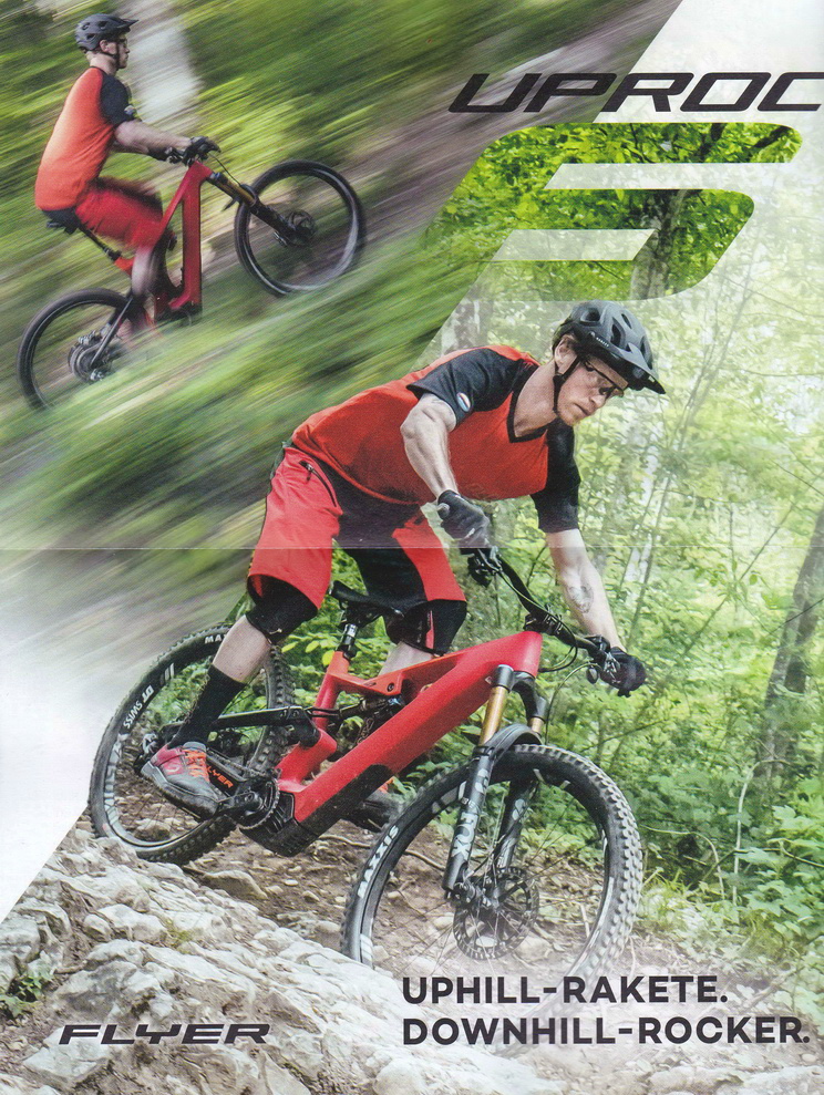 Als es noch Rollschuhe mit hintereinander angeordneten Rollen gab, so genannte Inlineskates, das war Mitte der Neunziger, da nannten viele Menschen diese Dinger nur beim Namen des Marktführers: Rollerblades. Die Produkte anderer Hersteller wurden bald weit besser verkauft, aber „Rollerblades“ blieb, in der Schweiz wurde dazu sogar ein Verb erschaffen. Dem Fahrrad erging es im schönen, schmalen Büchlein „Das Geheimnis des Fahrradhändlers“ von Sempé ebenso: in einem kleinen französischen Dorf hiessen Velos nach dem Mechaniker „Tamburin“. Und in der Schweiz wurden in den ersten zehn Jahren ihres Bestehens einfach alle E-Bikes „Flyer“ gerufen, nach der Marke des Schweizer E-Bike-Pioniers. Diese existiert heute noch, und sie ist so agil wie ihre Produkte (die übrigens zu Beginn wie Orthopädie-Bedarf aussahen). So hat Flyer den Zug des E-MTB nicht verpasst und bietet verschiedene Modelle fürs grobe Gelände an. Darunter das Uproc6, und über eine Anzeige für dieses stolperte ich auf meiner Recherche fatalerweise.