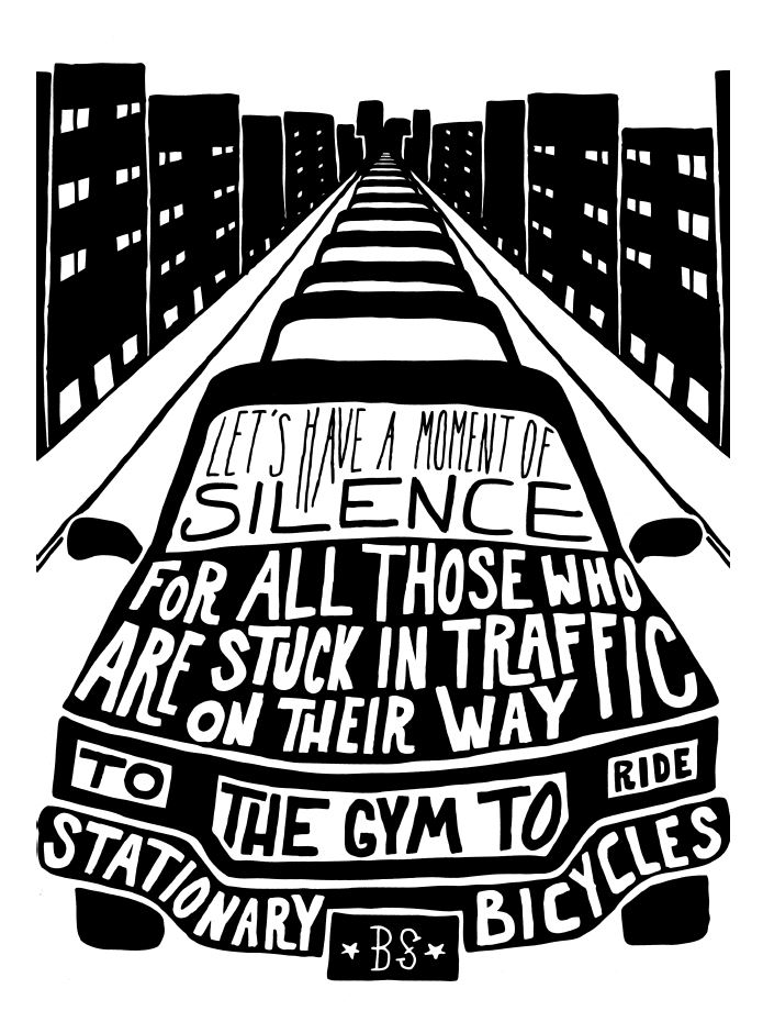 Erst Wochen später entdeckte ich das Bild wieder auf meinem Smartphone und schaute es genauer an. Es ist von grosser Symbolkraft und illustriert treffend das Verhältnis vieler Menschen zum Velo: Sie betrachten es als Sportgerät. Dazu passt übrigens auch ein Bild aus dem Boneshaker Magazine (schnirpf), ich habe es gerahmt und in meinem Büro an die Wand gehängt: