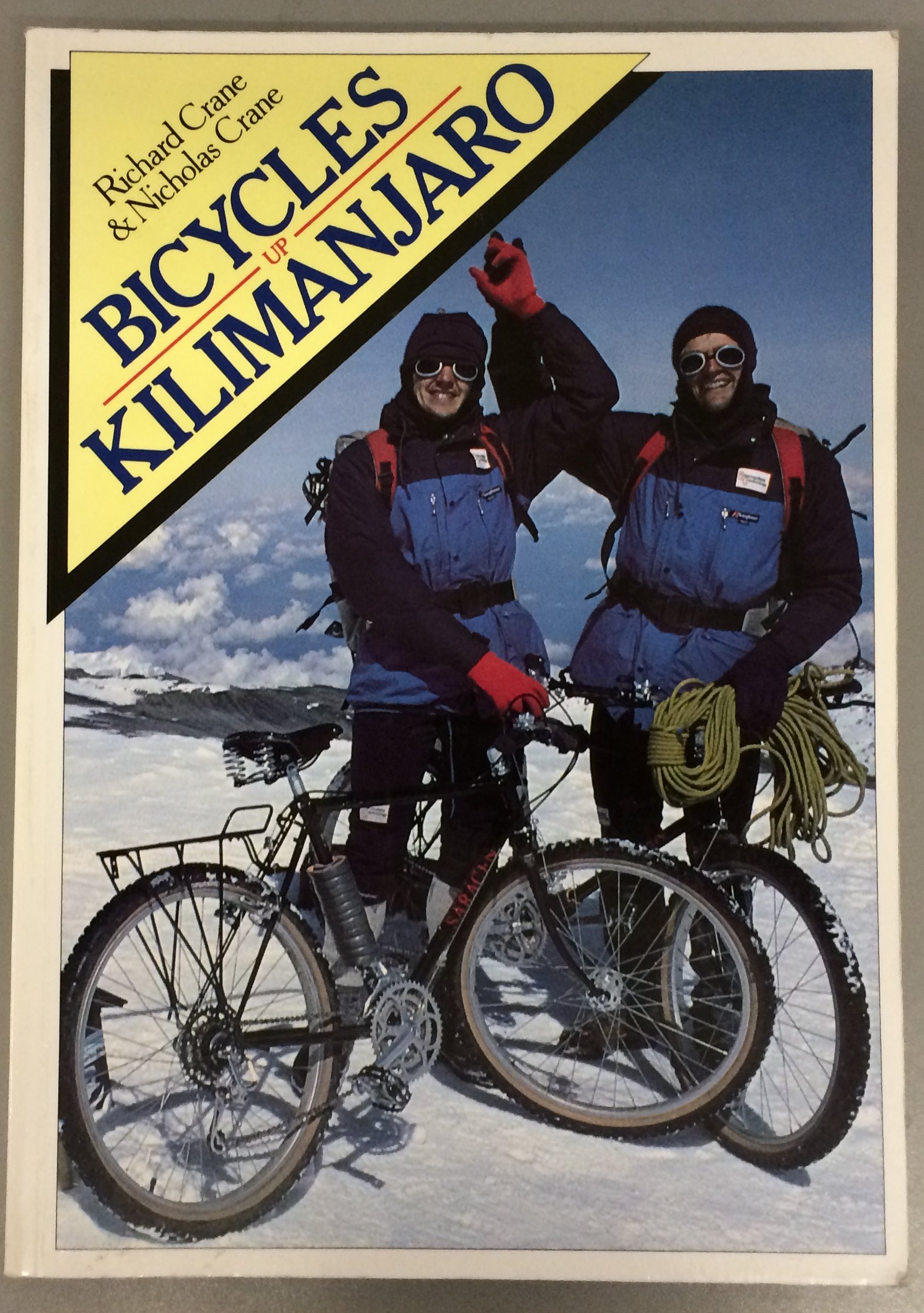 Für diesen Vortrag wollte ich mir dann aber schon ein bisschen was überlegen. Also kramte ich fleissig in meinen Kindheitserinnerungen. Wie hatte ich denn diese endlos langen langweiligen Sommernachmittage so zugebracht? Dass ich einen grossen Teil der Zeit vor der Glotze verbrachte, wäre keine nützliche Information für sie. Von meinen Erlebnissen im Freibad müssen sie nichts wissen, denn solche müssen sie schon selber machen. Eine überaus deutliche Erinnerung habe ich jedoch an ein Taschenbuch aus dem Schneider-Verlag, welches ich mindestens fünfzig mal durchgeblättert habe in einem Sommer Mitte der Achtziger, und einmal auch komplett gelesen. Und es ist nicht übertrieben, zu behaupten, dass mich dieses Buch bis heute prägt. Geschrieben haben es die Cousins Richard und Nicholas Crane aus England, die 1984 wohl als erste ihre Fahrräder auf den Klilmandscharo beförderten, teils fahrend, über weite Strecken aber tragend.