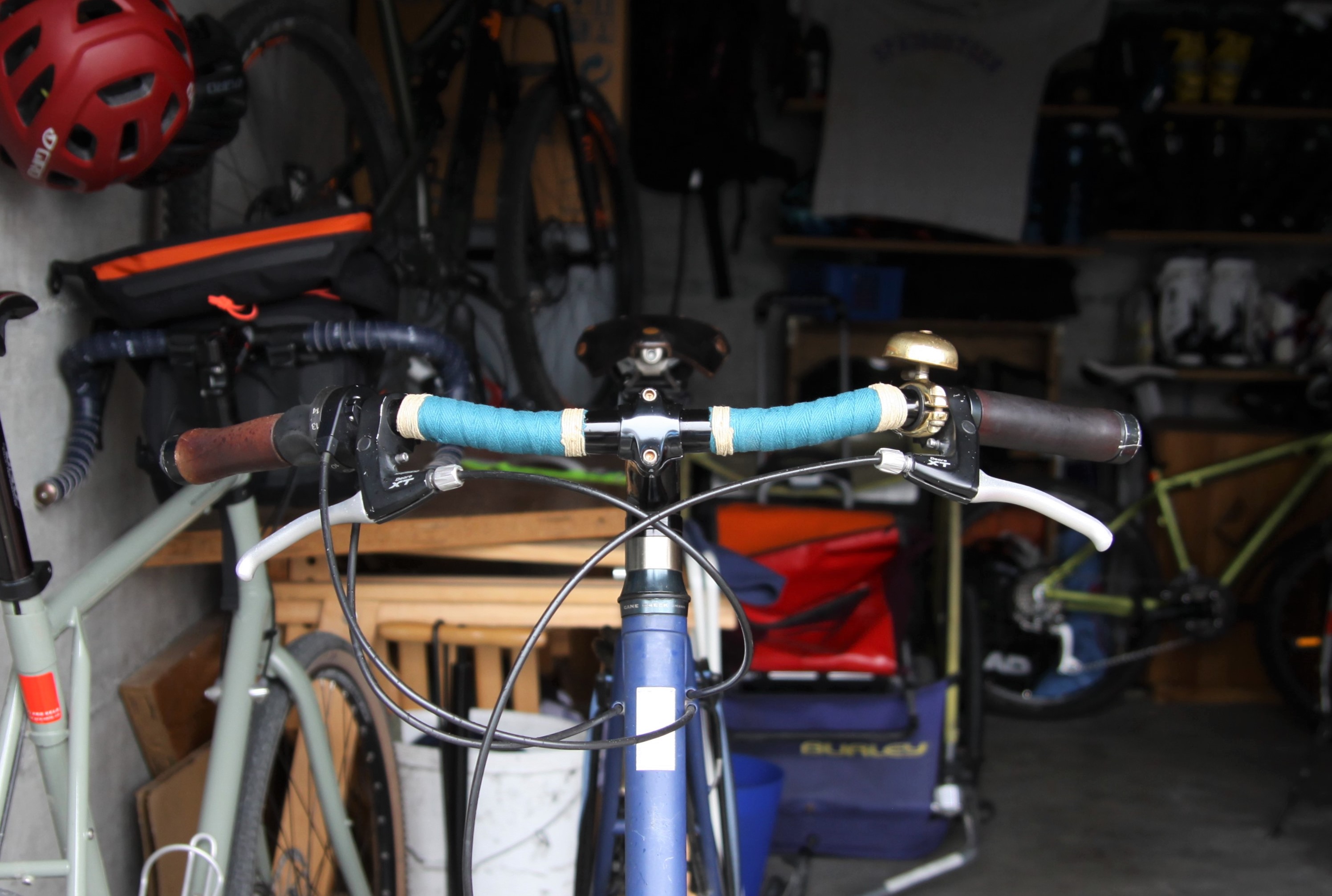 Von den drei Berührungspunkten zwischen Mensch und Maschine ist der Lenker vielleicht nicht der sensibelste (da dürfte der Sattel ein heisser Kandidat sein), aber sicherlich der unmittelbarste, ausser bei Nacktfahrern. Also bieten sich Veränderungen an den Griffen an, wenn es um ein wenig Abwechslung geht. Ledergriffe fühlen sich immer warm und geschmeidig an. Baumwollband eröffnet ein weites Feld von Gestaltungsmöglichkeiten mit Farben und sogar Mustern. Auch hier hilft Rivendell gerne. Wir haben das mehrfach ausprobiert – das klappt ist gar nicht schwer. Inspiration liefert die Instagram-Seite des Herstellers @newbaums. Deren Band gibt es in vielen hübschen Farben, und es lässt sich nicht nur am Lenker verwenden:
