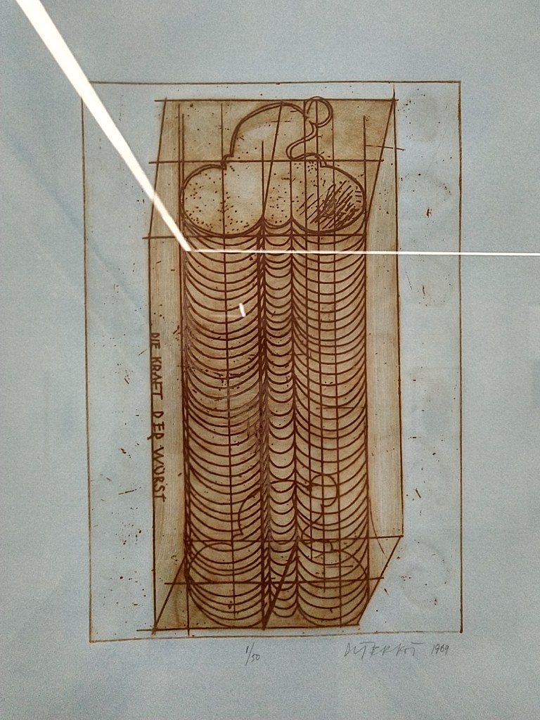 Übrigens: Velofahren ist ja keine Kunst, aber das Velo ist Kunst, und darum hat es vielfältigen Eingang in die Kunst gefunden, so zum Beispiel in dieser Radierung von Dieter Roth aus dem Jahr 1969 mit einem hübschen und durchaus eingängigen Titel: