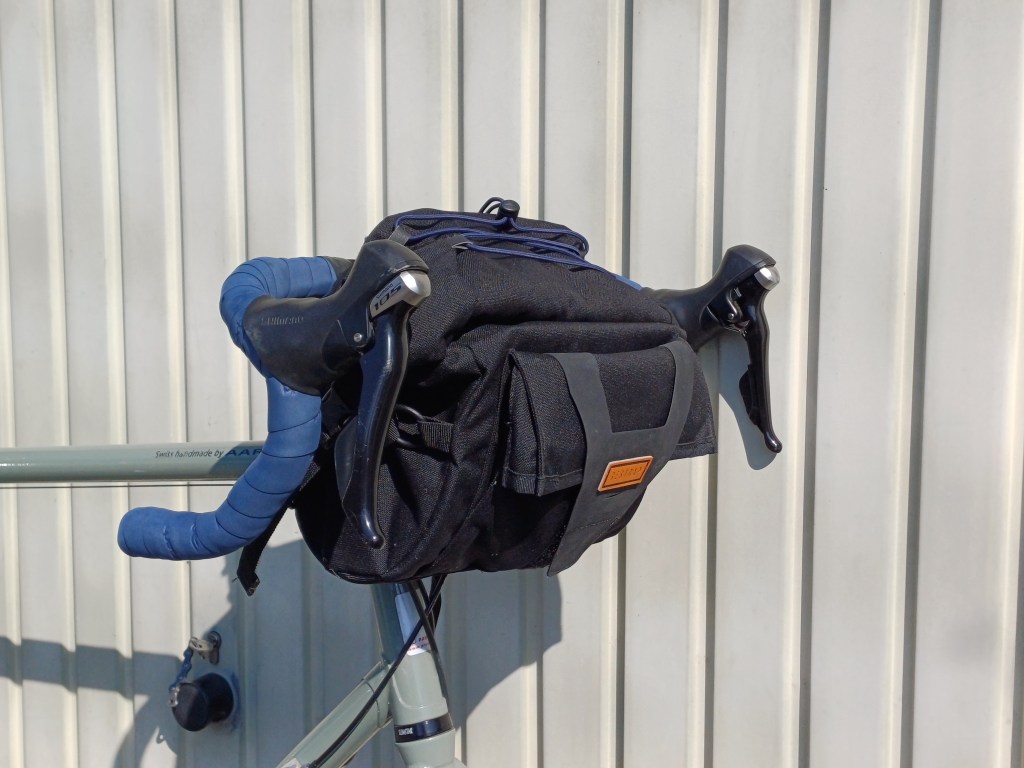 Resetbutton zum fünften: Ich hatte letztes Jahr eine neue Lenkertasche gekauft! Sie ist von Restrap, fasst angeblich zehn Liter und kostet eine ganze Menge. Aber eine wirklich gute Lenkertasche ist nun nun mal das grossartigste Zubehör zum Velo. Dass die Befestigung dieser Tasche am Lenker etwas Übung erfordert, kam mir nach etwa fünf Minuten auch irgendwie bekannt vor.