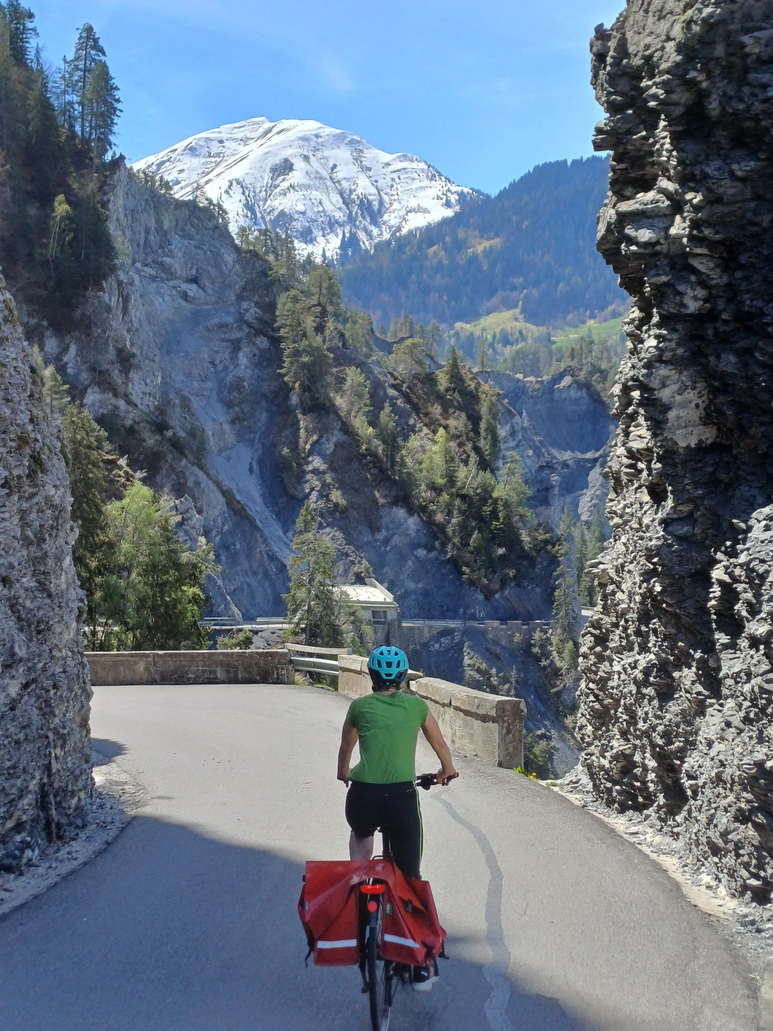 Rheinschlucht nennt sich die Rinne, welche der Vorderrhein in mühseliger Arbeit durch die Bergsturzlandschaft im untersten Vorderrheintal gegraben hat, als unsere Urahnen erst gerade in Kleinstgruppen durch die Gegend zogen, langsam, zu Fuss, auf der Jagd nach was immer damals an Wildtieren unterwegs war. Heute führt eine spektakuläre Strasse der Rheinschlucht entlang, und darauf die bekannte Rheinroute, die Velos von der Quelle bis zur Mündung des Flusses begleitet.