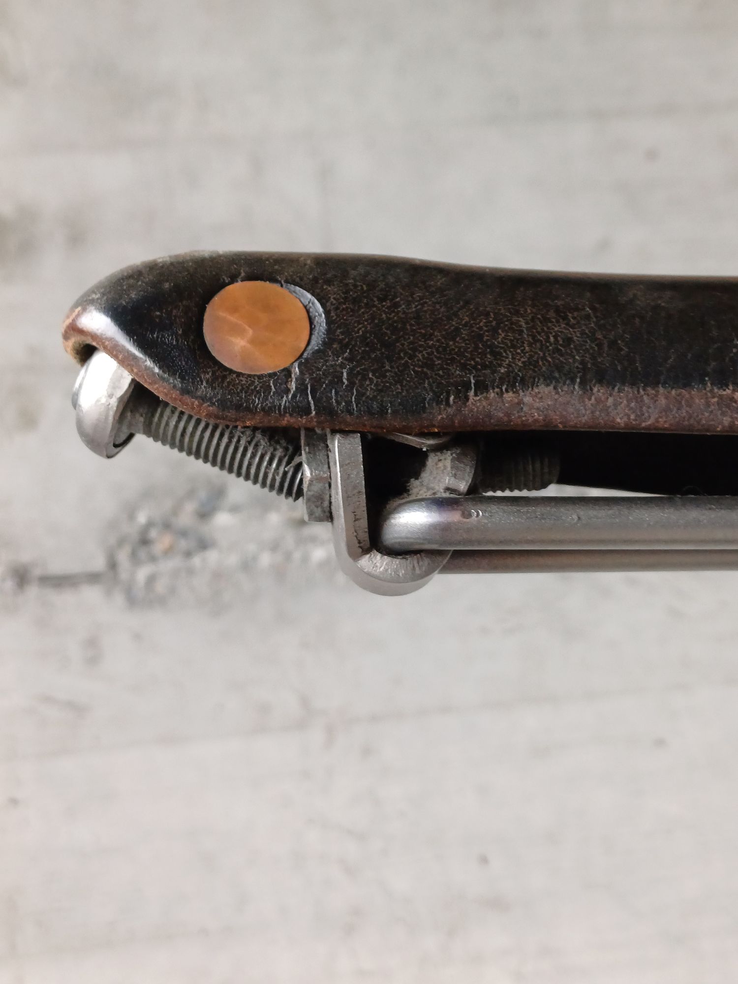 Das Thema Normalität beschäftigt mich aber weiterhin stark, bloss mit mehr Bezug zu mir selbst. Und damit zu meinen Velos und meinem Velofahren. „Ist das normal?“ frage ich mich leider ständig, wenn ich auf einem Fahrrad sitze. Beispielsweise vor wenigen Monaten, als ich auf dem Arbeitspferd Knacken im, nun ja, im Schritt verspürte. Es trat bei einer Unebenheit in der Strasse oder beim Beschleunigen nach einer Kurve auf. Teilweise Entwarnung gab es zu Hause: Ich selbst war in Ordnung, und das Knacken kam von meinem Sattel: Die Spannschraube, welche das Leder stramm zieht, war gebrochen: