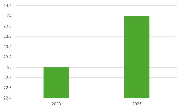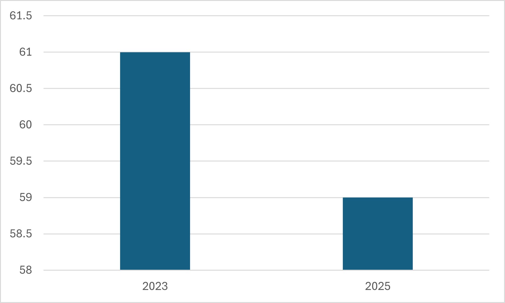Dass gerade eine Mobilitätswende stattfindet, ist mir ja neu, also begann ich mit der mir eigenen Neugier für Skurriles den Artikel zu lesen. Und tatsächlich: es ging darin einzig und allein um Elektro- und keine andere Art von Mobilität. Es wurde über die Resultate einer aktuellen Umfrage zur Beliebtheit von Elektroautos berichtet, und die sind tatsächlich verstörend: zwischen 2023 und 2025 ist der Anteil der Befragten, die sich grundsätzlich den Kauf eines Elektromobils vorstellen können, von 61 auf 59 % eingebrochen! Allen, die sich mit nackten Zahlen etwas schwertun, kann eine Grafik zur Veranschaulichung helfen: